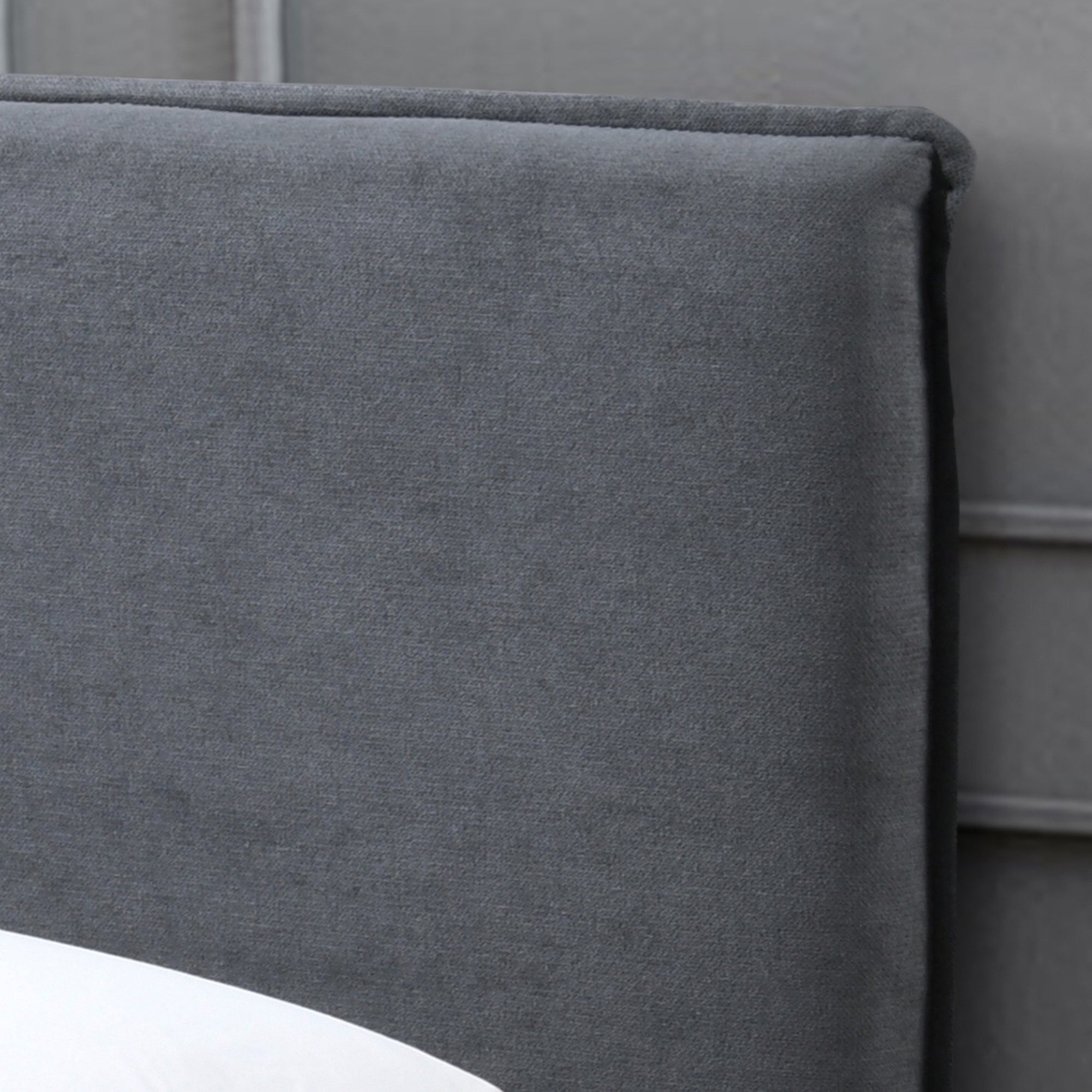 This King Bed is a modern masterpiece of sleek design and practical functionality, perfect for contemporary bedrooms. It features a tailored headboard and a low-profile footboard, upholstered in plush charcoal-colored polyester for a refined look. Supported by tapered black rubberwood legs and robust plywood slats with central support, this bed provides lasting durability and comfort. With a high weight capacity of up to 280kg, it offers a stylish and sturdy sleep solution.