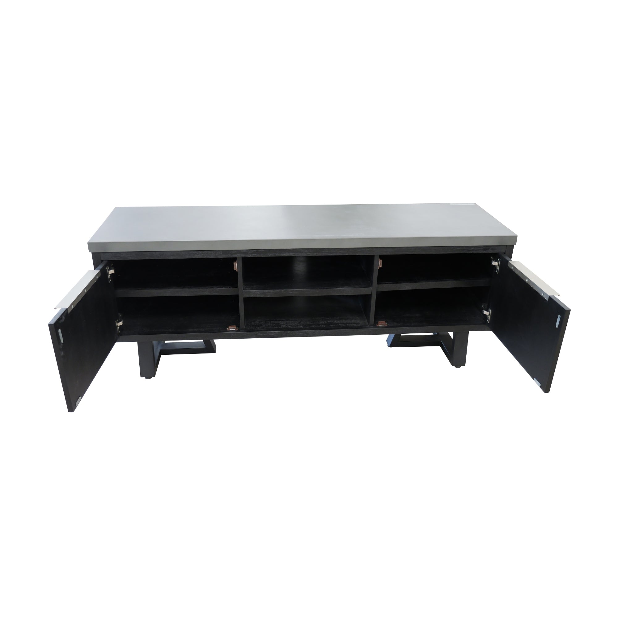 Enhance your living space with the 180CM ETU, a stylish and functional entertainment unit designed for modern homes. Constructed from Acacia wood with a durable concrete top and sturdy metal legs, this piece offers a sleek two-tone contemporary look. Featuring two doors, one drawer, and a niche, it provides ample storage for media essentials while maintaining a clean and organized appearance. With soft-close hinges and full-extension metal runners, it ensures smooth and quiet operation.