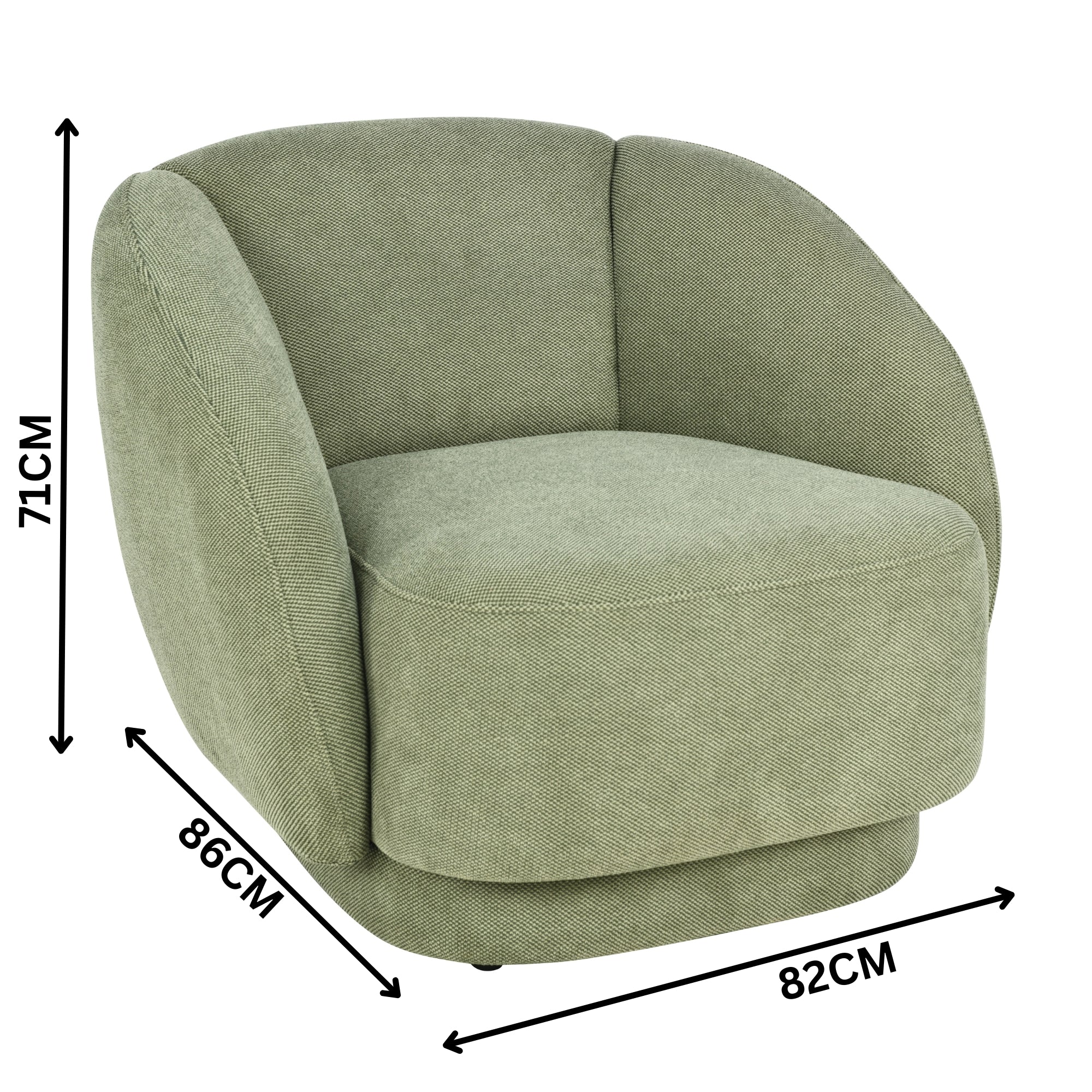 Add a touch of refined comfort and style to your living space with this Armchair in Olive Colour. Designed with a gracefully curved form and upholstered in a rich olive-green fabric, this armchair offers both visual appeal and luxurious comfort. The generously cushioned seat and backrest provide plush support, creating the perfect spot to unwind after a long day. Its soft, rounded silhouette brings a sense of calm and sophistication to any interior - whether it's a contemporary lounge, cozy reading corner, or bedroom retreat. Built on a durable plywood frame and supported by high-density foam seating, this armchair ensures long-lasting comfort and resilience. The 100% polyester upholstery adds a soft texture and excellent wear resistance, making it as practical as it is elegant. Supplied fully assembled, this armchair is ready to enhance your home from the moment it arrives - offering you a perfect blend of design, durability, and comfort in one stylish package.