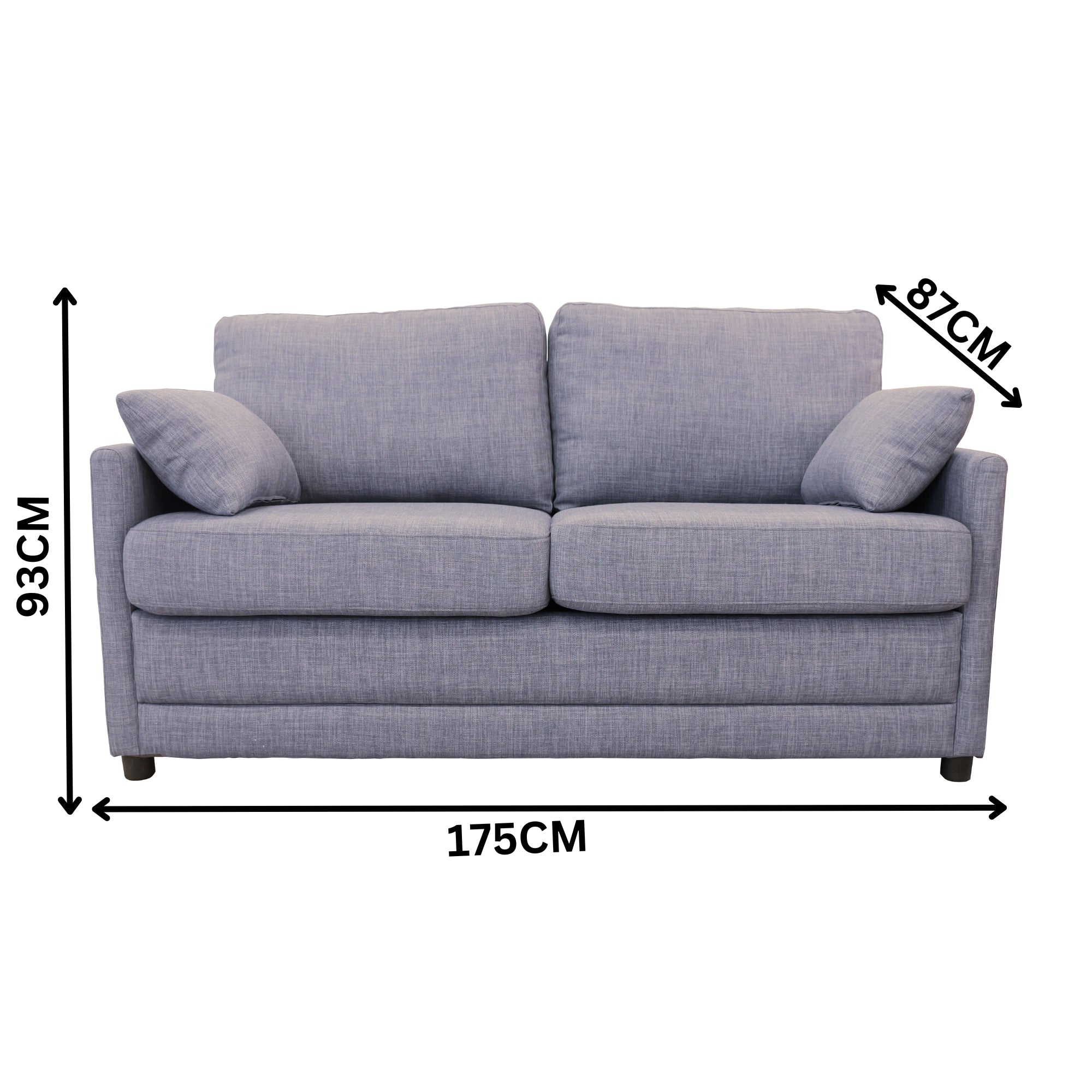Bring versatility, style, and comfort to your home with this double sofa bed in mid grey colour. Upholstered in a soft 100% polyester fabric, this sofa bed combines functionality with understated elegance - perfect for apartments, guest rooms, or compact living areas. Designed with track narrow arms and a sleek, space-saving silhouette, it effortlessly blends into modern interiors while maximizing available space. The bi-fold sofa bed mechanism transforms the sofa into a comfortable double bed in seconds, featuring a double innerspring mattress that ensures restful sleep for guests. Additional side pillows enhance comfort, making it ideal for both lounging and sleeping. Supported by a sturdy timber frame and durable round black plastic legs, this sofa bed guarantees lasting stability and ease of maintenance. A practical and stylish addition to any modern home, this sofa bed offers everyday comfort with the flexibility of extra sleeping space - all in a beautiful mid-grey fabric that complements any decor.