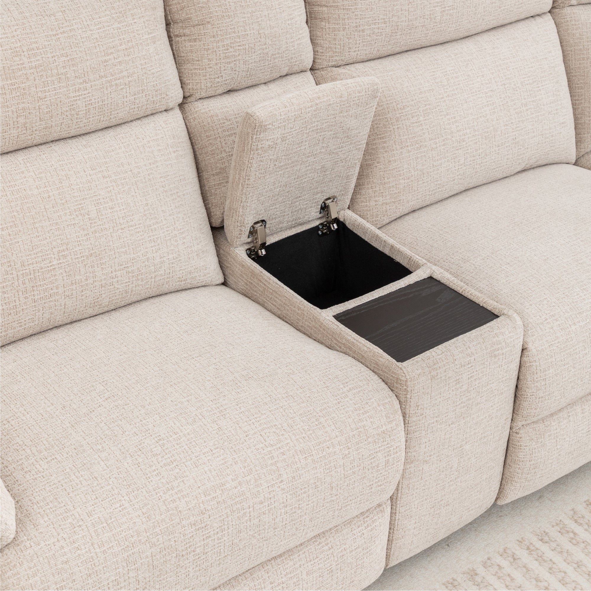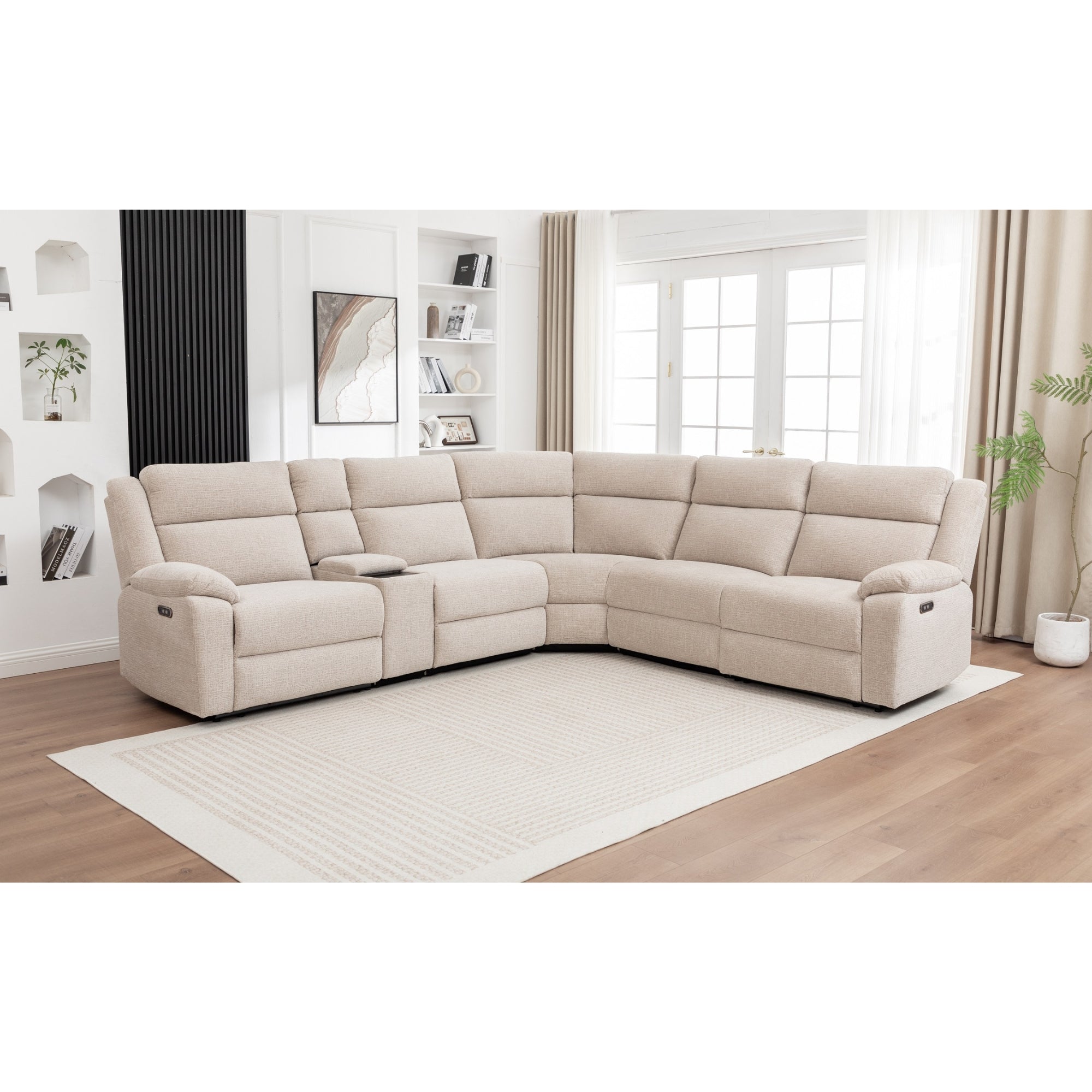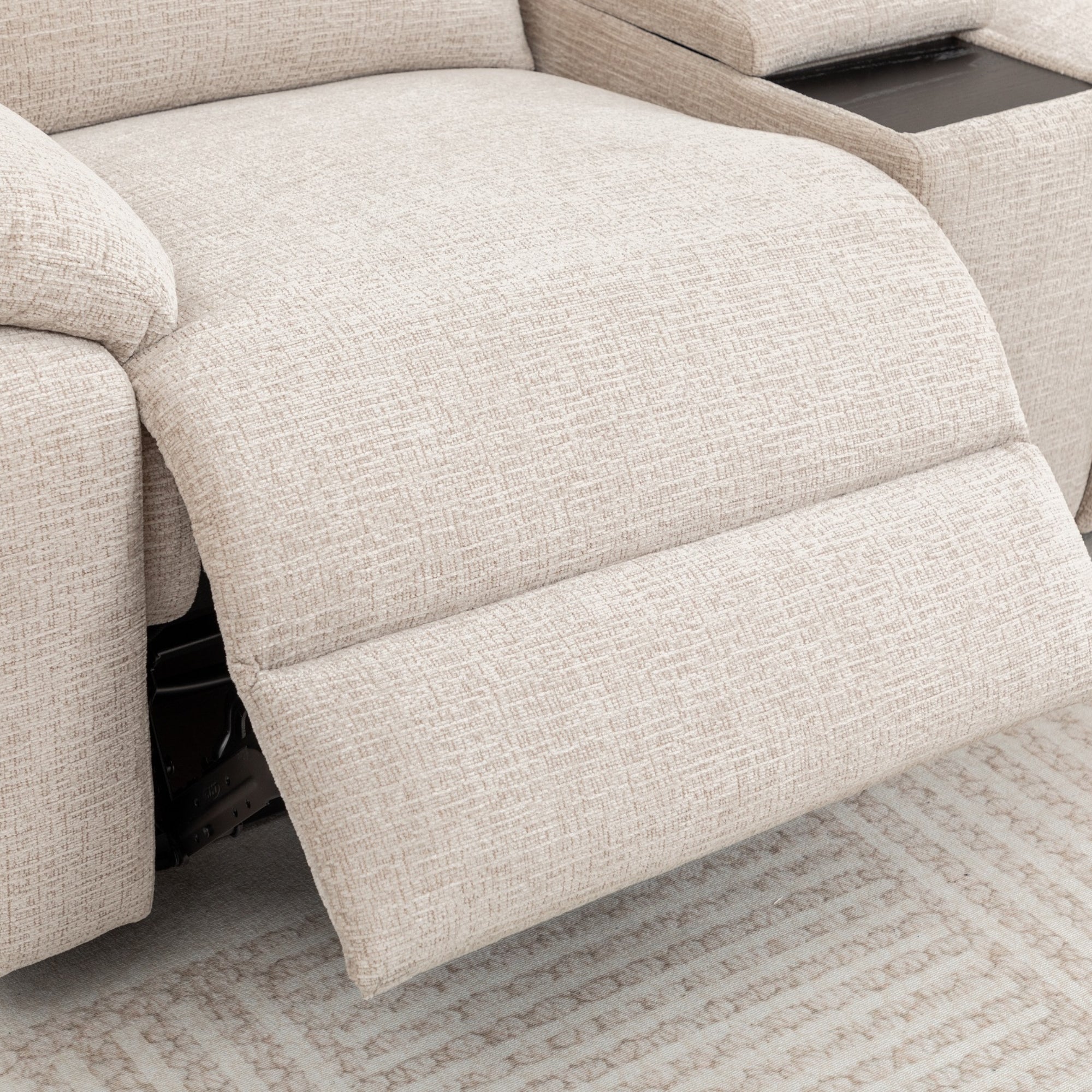 Transform your living space into a luxurious retreat with this Corner Modular with End Electric Recliners in Beige colour, crafted for ultimate comfort and modern elegance. This 5-seater corner modular lounge is upholstered in soft Kansas fabric, offering a refined look and smooth touch that complements contemporary interiors. The modular set includes LHF & RHF electric recliners, a storage console with tray, two armless seats, and a corner seat providing versatility and functionality for the modern home. Generously padded armrests, high backs, and supportive cushioning ensure superior comfort for lounging, reading, or family movie nights. With its sleek lines and minimal stitching, this modular sofa brings a polished finish to any living room.