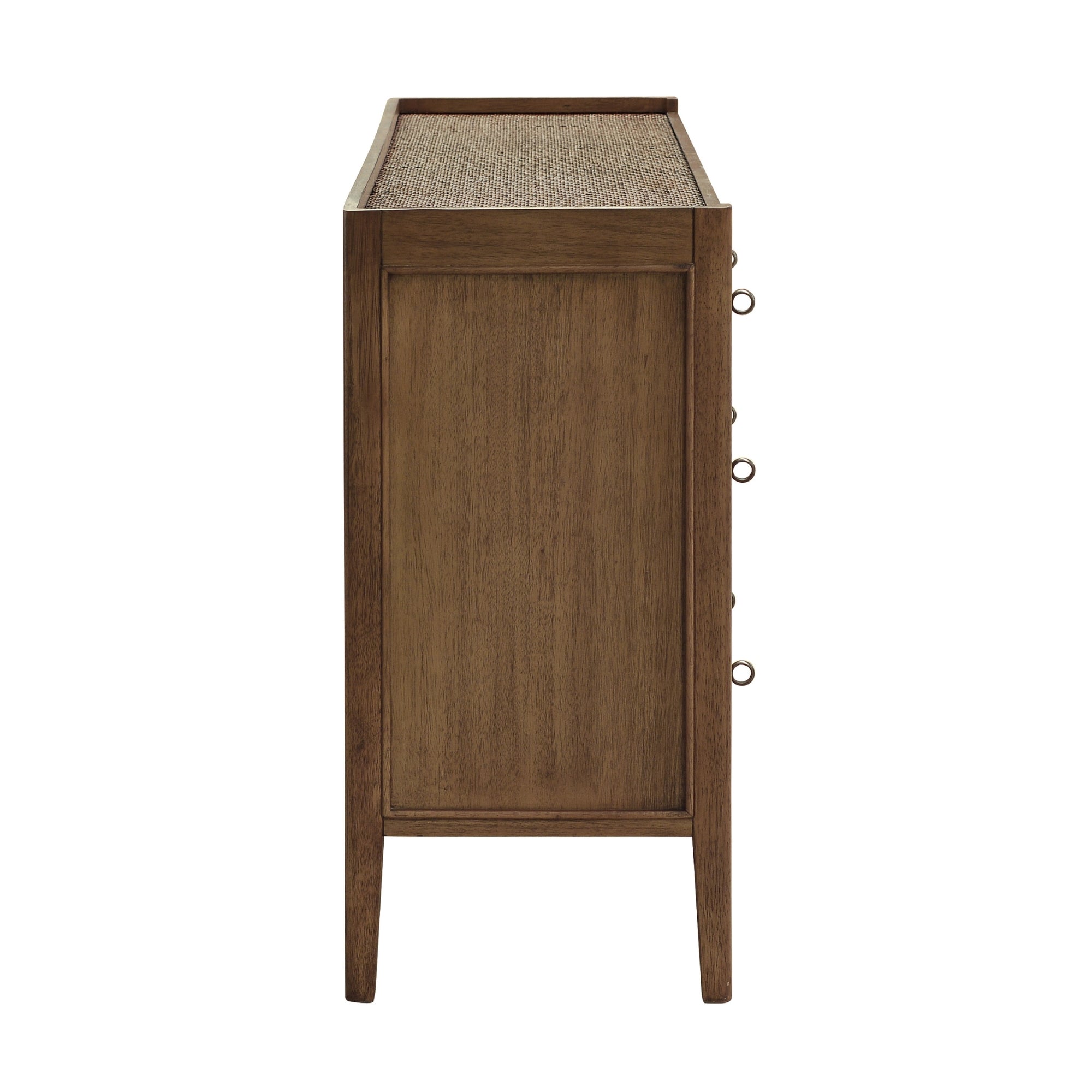 Add timeless charm and natural texture to your bedroom with this 6-drawer dresser in natural/rattan. Designed with a sturdy solid pine frame and MDF veneer pine panels, this piece blends strength with elegance. Featuring six spacious drawers with stylish iron handles, the bedside table provides convenient storage while showcasing a warm natural finish and rattan-inspired design. Perfect for complementing modern, coastal, or rustic interiors, this dresser balances durability, functionality, and style.