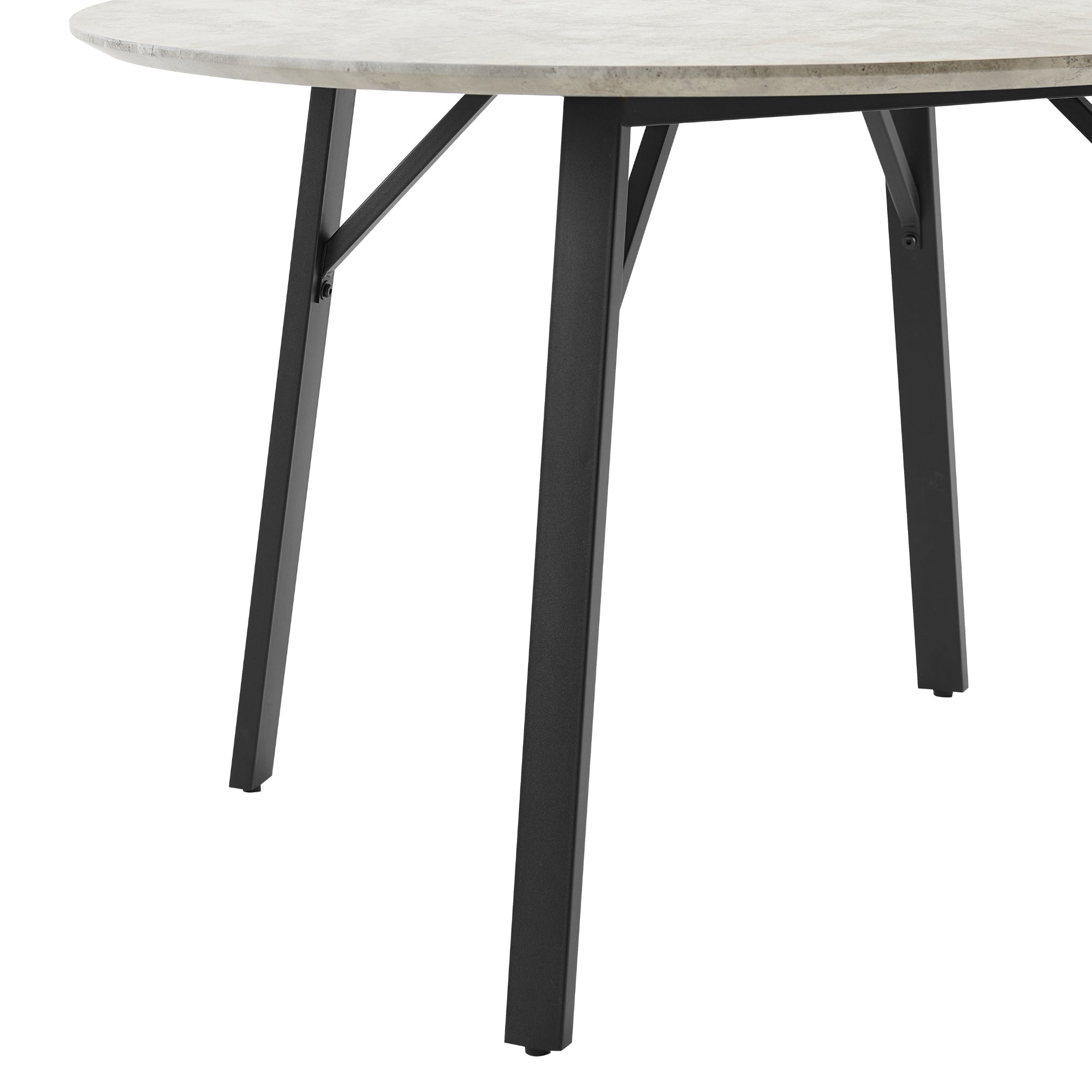 Upgrade your dining space with this 120cm Round Dining Table, featuring a stylish grey stone-colored marble-look tabletop. Designed for durability and convenience, the 3D melamine finish is waterproof, heat-resistant, and scratch-resistant, making it an excellent choice for everyday use. The sandy black powder-coated metal legs provide a sturdy foundation while enhancing the table's sleek, modern aesthetic. Perfect for small to medium dining areas, this table combines functionality with contemporary design.