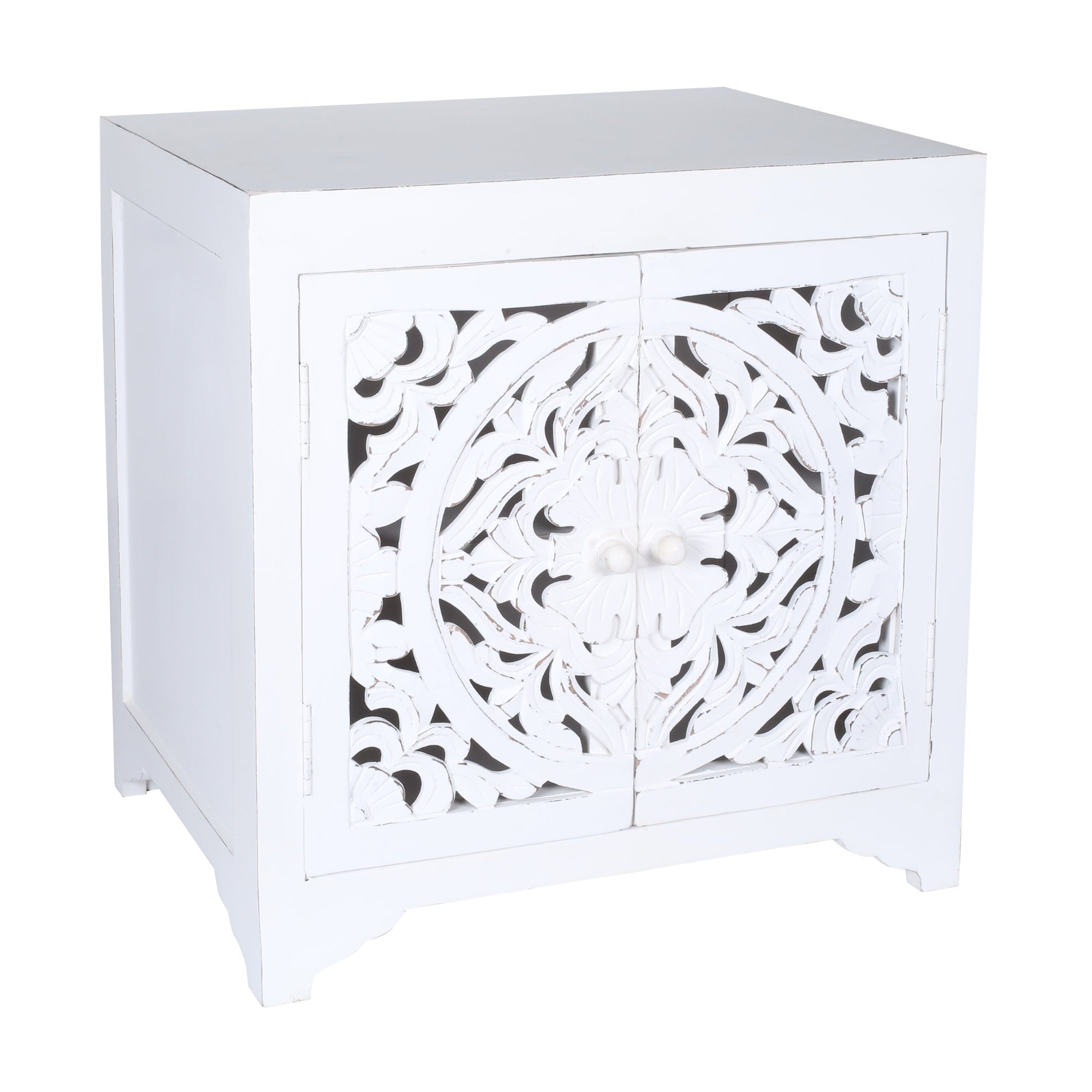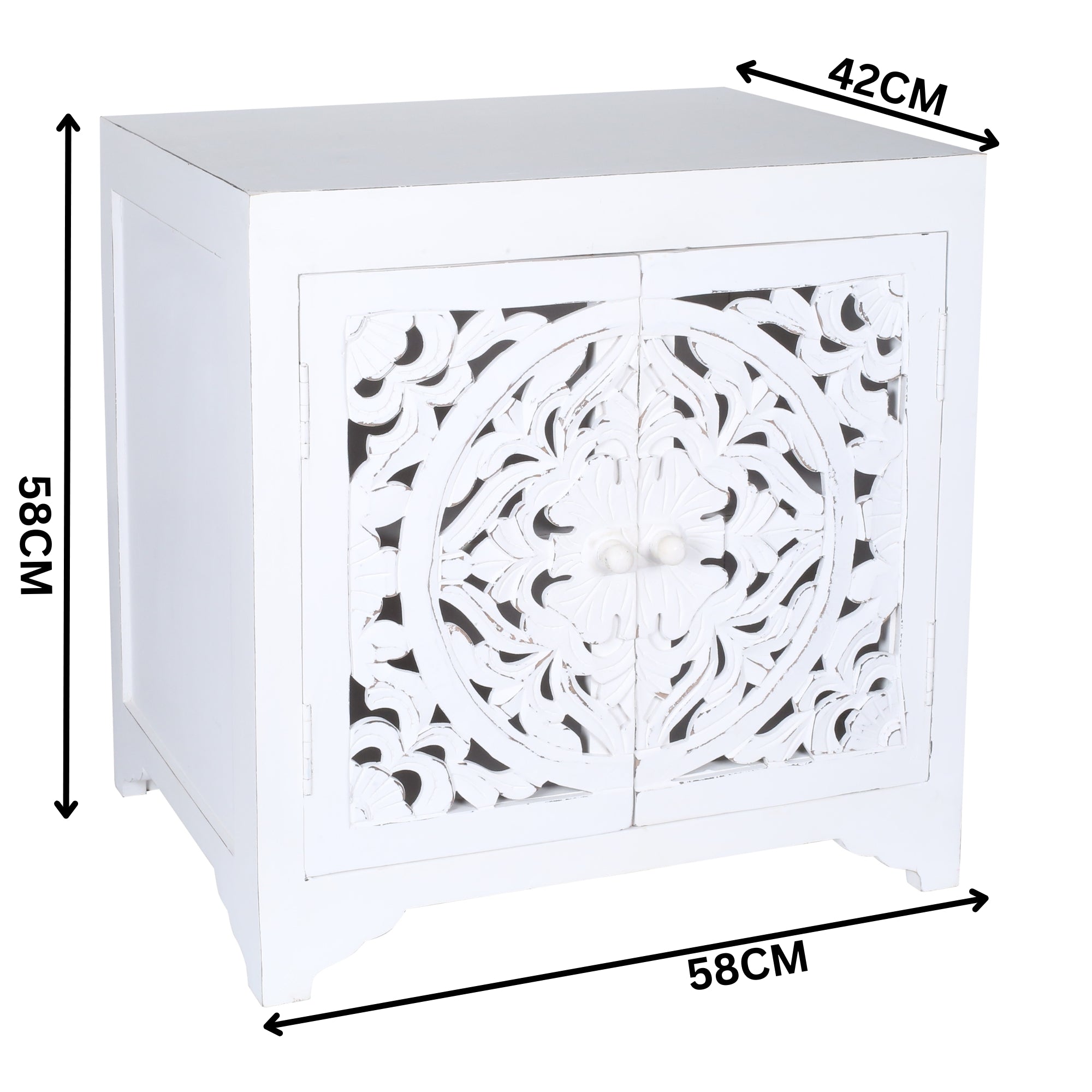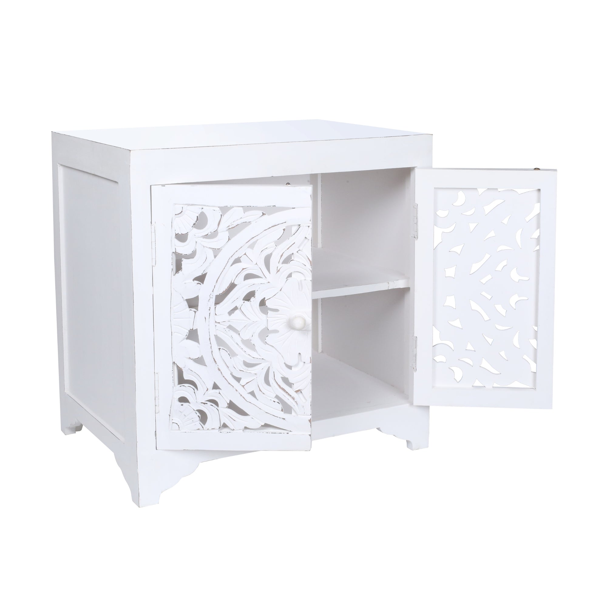 Enhance your bedroom with the timeless charm of the 2 Doors Bedside in Antique White. Beautifully crafted from a combination of solid Mango Wood and durable MDF, this piece brings elegance and functionality together. Its refined antique white finish blends seamlessly with a variety of decor styles, from classic to coastal and French provincial. Featuring two spacious cabinet doors, this bedside offers ample storage for your nightly essentials while maintaining a sleek and graceful appearance. Designed to complement a wide range of bedroom settings, it adds a sophisticated touch with its handcrafted detailing and soft, neutral tone.