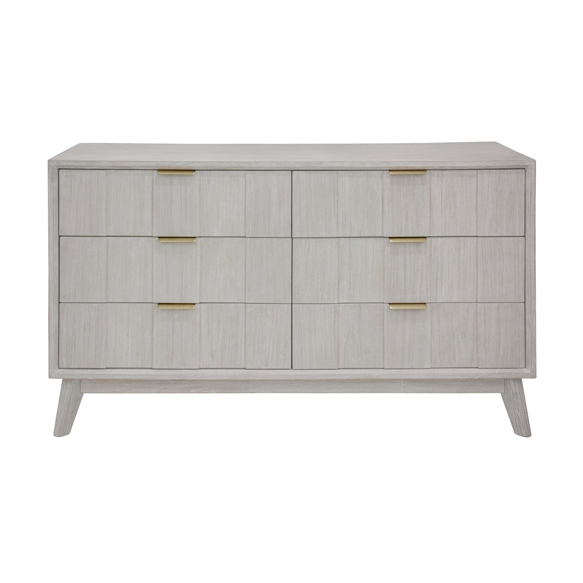 Add a touch of coastal charm to your bedroom with this 6 Drawer Dresser - White Washed. Crafted from solid Acacia timber, this dresser embodies natural beauty and durability, featuring a soft whitewashed finish that highlights the wood's unique grain. The panelled front design and tapered timber legs bring a breezy, relaxed aesthetic inspired by coastal living. Each drawer is crafted from solid timber, with the top drawer felt-lined for a premium touch, perfect for storing delicate items. The brushed gold metal handles and full-extension metal runners ensure effortless access and a refined look. Designed to complement the matching White Washed Bedroom Range, this bedside table offers both timeless elegance and everyday functionality.