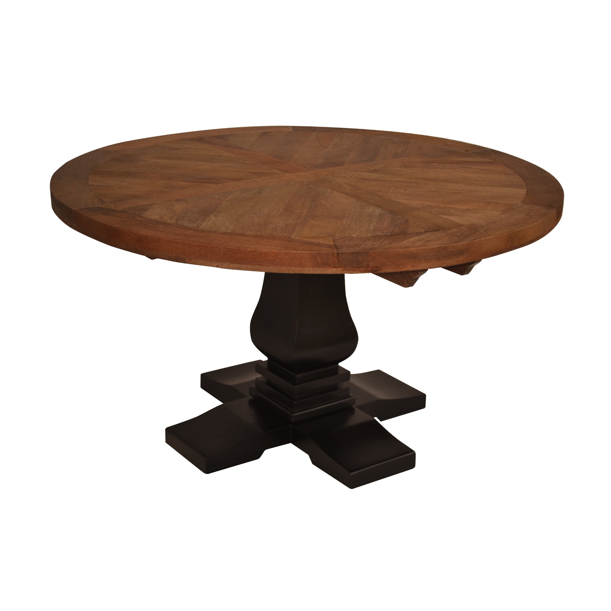 Bring timeless elegance and craftsmanship to your dining space with this 135cm Round Dining Table, beautifully combining strength, style, and artisanal detailing. Handcrafted from durable mango wood and MDF, this statement piece showcases a sandblasted American oak top that highlights the natural texture and warmth of real timber. The standout feature of this table is its handcrafted parquet-patterned top, offering rich visual depth and unique variations that ensure no two pieces are ever the same. The sculpted baluster legs, painted in a contrasting black finish, give the table a French provincial charm that harmonizes with both traditional and modern interiors. With its sturdy frame and generous surface area, this dining table provides ample space for family gatherings, dinner parties, and everyday meals - a perfect blend of durability and timeless sophistication.