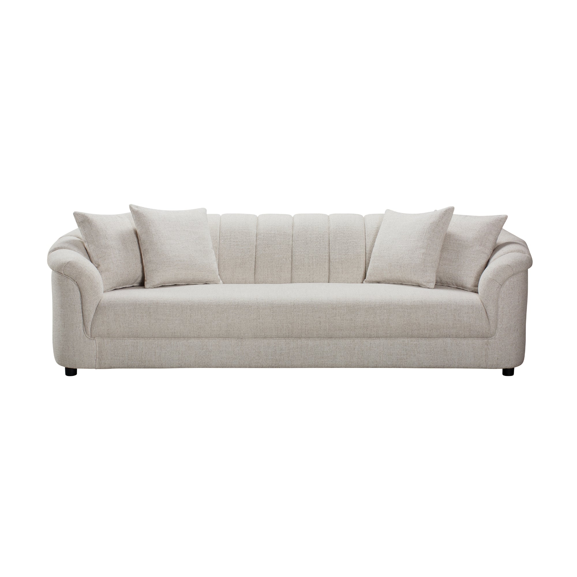 Bring timeless elegance and comfort into your living space with this 4-Seater Sofa in Beige colour, a perfect balance of sophistication and practicality. Upholstered in a soft 100% polyester fabric, this sofa creates a warm, inviting atmosphere while offering excellent durability for everyday use. The design showcases elegantly curved arms and vertical channel detailing on the backrest, giving it a sculptural, high-end look. Generous seating space and four matching scatter cushions add layers of comfort and style, making it ideal for family lounging or entertaining guests. Its neutral beige tone blends effortlessly with various interior styles - from modern minimalism to classic charm, making it a versatile centerpiece for any home.